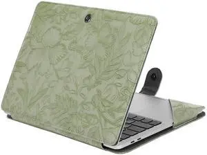 MOSISO Case Compatible with MacBook Air 13.6 inch M4 M3 M2 2025-2022 /Air 13 M1 2022-2018 /Pro 13 M2 M1 2025-2016, Embossed Retro Hibiscus PU Leather Portfolio Protective Stand Cover, Sage Green