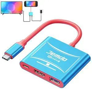 JEMDO Switch 2 HDMI Adapter Dock Station(3 Ports),4K@144Hz HDMI 2.1&48 Gbps,PD 100W & USB 3.2,Portable USB C to HDMI Travel Dock for TV Compatible with Nintendo Switch 2(Only Below V21.0.0)/OLED/2017