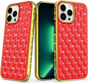 Luxurious Quilted Diamond Case for iPhone 14 Pro - Red