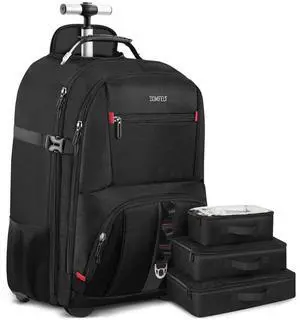 ZOMFELT Rolling Backpack, Travel Backpack with Wheels, Carry on Backpacks with 3 Packing Cubes, 17.3 Inch Wheeled Laptop Backpack for Men Women Adults to Travel Work Business Black