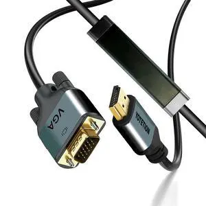 HDMI to VGA 40Ft Cable with IC , Gold-Plated HDMI to VGA Compatible for Computer, Desktop, Laptop, PC, Monitor, Projector,HDTV, Raspberry Pi, Roku, Xbox and More, green-gray aluminum shell