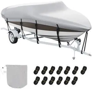 VEVOR Boat Cover, 17'-19' Trailerable Waterproof Boat Cover, 600D Marine Grade PU Oxford, with Motor Cover and Buckle Straps, for V-Hull, Tri-Hull, Runabout, Bass Boat, Fish Ski Boat, Grey