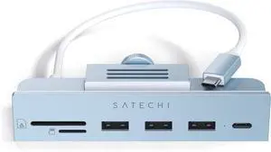 Satechi Clamp Hub USB-C USB-C Data Port, USB-A 3.0 Data Ports, Micro/SD Card Reader for Apple Studio Display and 24-inch iMac M1 2021. Not Compatible with 2020 and Earlier iMac Models (Blue)