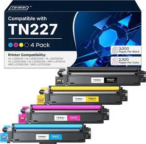 TN-227BK/C/M/Y High Yield 4-Pack Compatible for Brother TN227 TN-227 Toner for Brother MFC-L3770CDW HL-L3290CDW HL-L3270CDW HL-L3230CDW HL-L3210CW MFC-L3750CDW HL-L3210CW MFC-L3710CW Printer Ink
