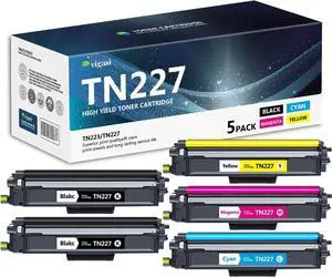 TN227 tn-227bk/c/m/y high Yield Toner Cartridge 5 Pack(with chip) Compatible Replacement for Brother tn227 tn227bk tn223 Toner for HL-L3270CDW MFC-L3770CDW MFC-L3710CW HL-L3290CDW MFC-L3750CDW Prints