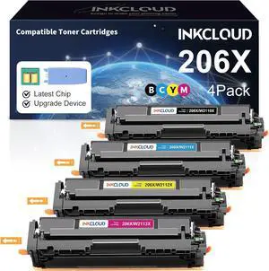 INKCLOUD 206X Toner Cartridges 4 Pack with Chip and Upgrade Device Compatible Replacement for 206X A W2110A W2110X Work with Color Pro MFP M283fdw M283cdw M283 Pro M255 M255dw High Yield Toner