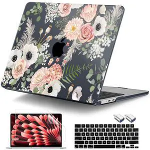 DONGKE for MacBook Air 13.6 Inch Case 2025 2024-2022 A3240 A3113 A2681 M4 M3 M2 Chip Touch ID, Plastic Hard Shell & Keyboard Cover & Type C Adapter for MacBook Air 13 inch M4, Flowers & Plants
