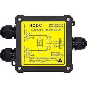 AC120V 15Amp Automatic Transfer Switch, ATS Auto Transfer Switch (Core Wires + NEMA 5-15P)