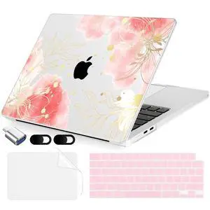 MecBevia Compatible with MacBook Air 15 inch Case, M4 A3241/M3 A3114/M2 A2941 (Released 2025 to 2023), Hard Shell, Keyboard Cover, Screen Protector, Webcam Cover & Type-C Adapter, Vector Flower3