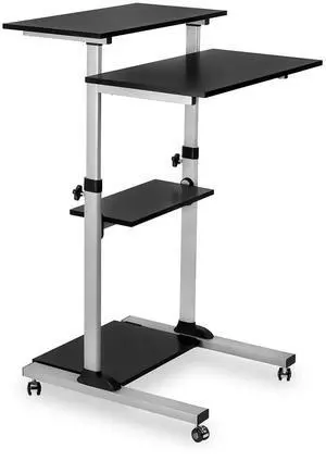 Mount-It! Mobile Standing Desk Workstation | Height Adjustable Computer Rolling Cart | Black & Silver