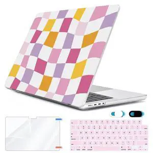 HOHAIYOO for MacBook Pro 14 inch Case M5 M4 M3 M2 M1 A3434 A3112 A3185 A3401 A2918 A2992 A2779 A2442 2021 2022 2023 2024 2025 Release, Hard Shell Case+Keyboard Cover+Screen Film+Webcam Cover, Lattice