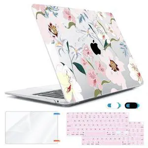 HOHAIYOO Compatible with MacBook Air 13 inch Case 2022 2021-2018 A2337 M1 A2179 A1932 Retina Display with Touch ID, Plastic Hard Shell Case+Keyboard Cover+Screen Protector+Webcam Cover, Pink Floral