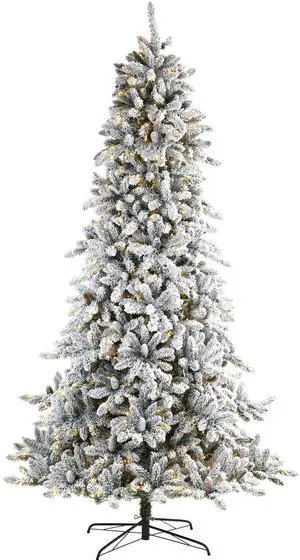 Nearly Natural 9' Flocked Livingston Fir Christmas Tree w650 LED and Cones
