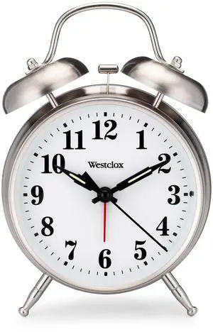Big Ben Twin Bell Alarm Clock | Loud Alarm Clock for Heavy Sleepers | Battery Operated Metal Clock with Backlight for Bedside Table, Bedroom, Kids Room, Desk (Silver, 4")