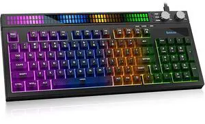 SABLUTE Quiet Gaming Keyboard with Sound-Sync RGB LED Display, 94-Key Wired PC Gaming Keyboards for Pro Gamers, Tactile Mechanical Feel, Anti-Ghosting, Volume Control Knob for PS5/Xbox/PC, Black