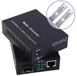 A Pair of Mini Gigabit Fiber Media Converter with 2Pcs 1.25G LC Dual Transceiver Module up to 20KM Plug and Play 10/100/1000Base-Tx RJ45 to 100/1000BASE-SX SFP Slot Ethernet Converter