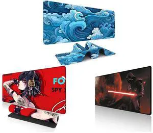 Alpha Fit Classic Great Wave off Kanagawa Gaming Mouse Pad XXL (35.4" x 15.7") - Traditional Blue Japanese Art Desk Mat - Non-Slip Rubber Base for Office and Alpha Fit Anime Gaming Mouse Pad XXL (35.4" x 15.7") - Dark Fantasy Succubus Girl - Large Mouse Pad Extended - Extra Large Gaming Mouse Pads Purple Waifu Style - 02 and Alpha Fit Starwar Gaming Mouse Pad XXL (31.5" x 11.8") - Star Wars Themed Large Mouse Pad - Extra Large Gaming Mouse Pads with Non-Slip Rubber Base & Stitched Edges for Sci-Fi Setup
