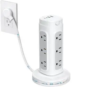 Extension Cord with Multiple Outlets Surge Protector Tower Power Strip with Surge Protection, Screw Wall Mount Outlet with 12 Ac Outlets with 3 USB Ports(1 USB C),6.5 Ft, Overload Protect for Office