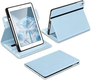 DTTO Rotating Case for iPad 6th / 5th Generation 9.7 Inch 2018/2017, iPad Air 2 / Air 1 Case, 360 Degree Swiveling Premium Leather Folio Stand Cover with Pencil Holder - Auto Wake/Sleep, Ice Blue
