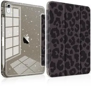 Loyrina Sparkle Case for iPad 11th Generation (A16) 11 inch 2025 /iPad 10th Gen 10.9 2022 - Premium Satin-Touch Cover, Embedded Glitter Clear Back, Cute Trifold Protective Skin - Midnight Leopard