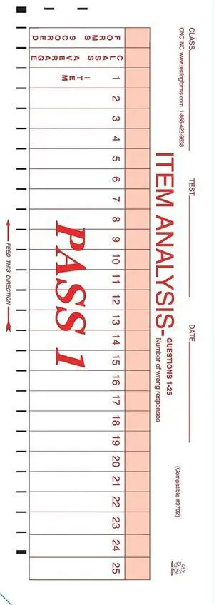 TEST-ITEM50 Item Analysis 9702 50 Question Compatible Testing Forms (100 Pack)