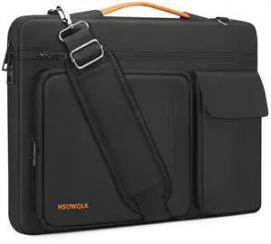 HSUWQLK 360 Protective Laptop Shoulder Bag 15.6 inch, 15-15.6 inch Computer Bags Compatible with MacBook Pro 16 inch, HP,Dell,Lenovo,Asus Notebook, Side Open Messenger Bag with 5 Pockets&Strap, Black
