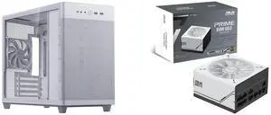 ASUS Prime AP201 White MicroATX Tempered Glass Edition Supports Graphics Cards up to 338mm, 360mm Coolers, & Standard ATX PSUs, Tool-Free Side Panels, Tempered Glass Side & Front Panel USB Type-C® ASUS Prime 850W Gold (850 Watt, ATX 3.0 Com
