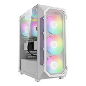 GAMDIAS White ATX Mid Tower Gaming Computer PC Case w/Tempered Glass, Built-in 4X 120mm ARGB Fans, Support Up to 6X 120mm Fans, 360mm AIO/Radiator, 340mm GPU/VGA, 160mm CPU Air Cooler