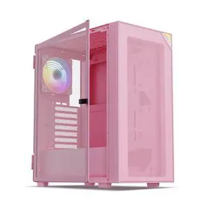 Vetroo AL800 Mid Tower ATX PC Computer Case - Door Opening Design Tempered Glass, Adjustable LED Strip, Pre-Installed ARGB & PWM FDB Fan in Rear, Support for 50 Series GPUs - Pink