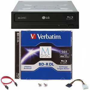 Produplicator LG WH16NS40 16X Blu-ray BDXL DVD CD Internal Burner Drive Bundle with Free 50GB M-DISC BD-R DL + SATA Cable + Mounting Screws
