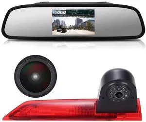 HD 1280x720pixel Third Brake Light Backup Reverse Camera+4.3" Rearview Mirror,Car Parking Camera Replacement for Ford Transit Custom 2012-2016 Transporter Business MPV SUV Bus