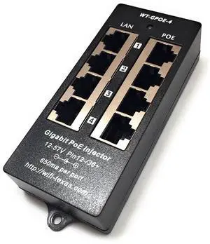 PoE Texas 4 Port PoE Injector - Gigabit Passive Power Over Ethernet - 802.3af or at Compatible PoE Injector for VoiP Phones, WiFi Access Points, IP Cameras - 4 Ports of Data + Power Out