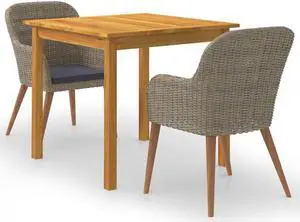 vidaXL Patio Dining Set 3 Piece Outdoor Table and Chair Conversation Set Brown