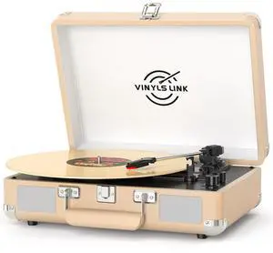 Vinyl Record Player Bluetooth with Treble & Bass Gain Vintage Portable Suitcase Turntable LP Player with Built-in Speakers, 33 45 78 RPM, Belt Drive, Auto Stop, RCA/AUX/Headphone Jack