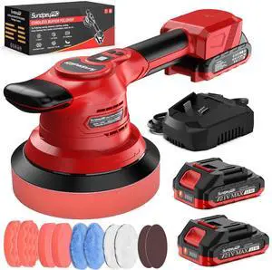 Cordless Car Buffer Polisher Kit, 6" Dual Action Random Orbital Polisher, 6 Variable Speed (16005500 RPM) 2×21V 2000mAh Rechargeable Batteries, 13 PCS Polishing & Waxing Attachments for Car DetailingBrand: MetraFeatures: Automotive, 5500 rpm, Acrylonitrile Butadiene Styrene (ABS), Battery Powered, 6 inch buffer polisher, Adapter, 21V 2×2000Ah Batteries, Fast charger, apron, protective gloves, towel, sandpaper, Wool self-adhesive pad, flat sponge pad, wave sponge pad, microfiber polishing hat and manual, falseWeight: 2.282 kilogramsType: Car Polishes & WaxesModel #: 913890419877