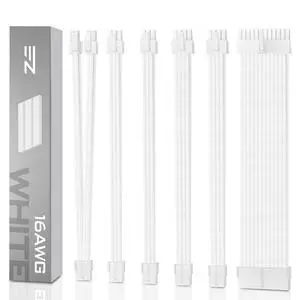 PSU Cable Extension Kit - Sleeved Cable- Custom Power Supply Extension, 16 AWG, 24/8/6/4-PIN with White Combs