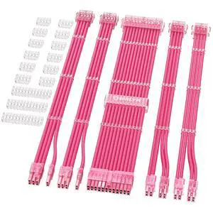 PSU Cable Extension Kit - 8Pin PCIE (34cm), 24Pin ATX & EPS (30cm), 16AWG Power Supply Cables with Combs, Soft Braided Sleeve for PC Build (Pink)