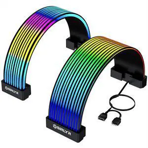 Black RGB LED Strips for PSU Cables - Flexible ARGB Lighting Sleeves,Manage/Cover 8 pin PCIE/12VHPWR GPU,24 Pin ATX Power Supply Cable and Extensions,Decor PC Case,5V 3Pin SYNC