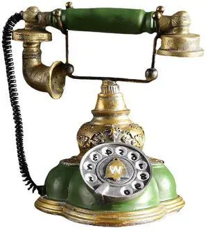 Vintage Rotary Dial Telephone Bronze Resin Corded Landline with Functional Dial & Noise-Canceling Audio, Old-Fashioned Desk Phone for Home Office, Cafe, Bar & Hotel Decor
