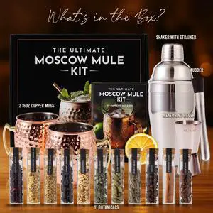 Moscow Mule Kit Gift Set - 2 Copper Mugs - 11 Botanicals - Stainless Steel Shaker & Jigger - Mudder - Recipe Book - Moscow Mule Cocktail Kit - Valentine Gifts for Women - Accessories for Infusion