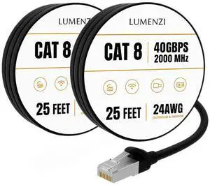Nippon Labs Cat8 RJ45 1FT Ethernet Patch Internet Network LAN Cable, Indoor/Outdoor, 24AWG, Shielded Latest 40Gbps 2000Mhz, Weatherproof S/FTP for Router, PS4, PS5, Xbox, PoE, Switch, Modem (Black)