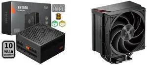 PCCOOLER CPS YN1000 Fully Modular Power Supply, 80 PLUS Gold 1000W PSU, 12V-2x6 Cable, ATX 3.1 & PCIe 5.1 Ready, 105°C Rated Japanese Capacitors, ECO Mode, 135mm FDB Fan, 10 Years Warranty and PCCOOLER CPS RZ500 CPU Air Cooler, 5 Direct Contact Heat Pipes, Fully Covering CPU Hotspot, 255W TDP, 155mm (H), 120mm PWM Fan, for AMD AM5/AM4 & Intel 1851/1700/1200/115X, Black - $193.98