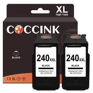 COCCINK 240XL Black Ink Cartridge for Canon Pixma MG3600 MG3620 MG2120 MG3520 TS5120 MX452 MX512 MX532 MX472 MG3120 Printer Remanufactured for Canon 240XL Black Ink Cartridge PG-240 240 XL (2 Black)