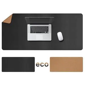 Cacoy Large Desk Mat, 48" x 24" Leather Desk Pad Protector with Cork & PU Leather, Double-Sided Office Desk Cover Mat, Large Computer Mouse Pad, Waterproof Desk Blotter Pad for Office and Home, Black