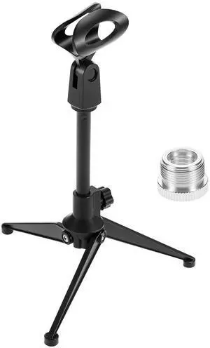Desk Mic Stand, Foldable Desktop Microphone Tripod Stand, with 5/8" Male to 3/8" Female Adapter, for Dynamic & Condenser Mics