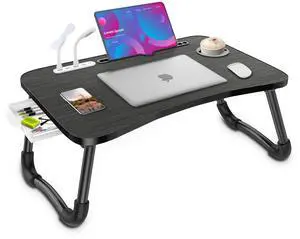 Laptop Bed Desk, Adjustable Lap Desk, Small Laptop Table with USB Charge Port, Desktop Card &Pen Slot, Cup Holder, Foldable Bed Tray Table for Couch Sofa Chair Floor Eating Working