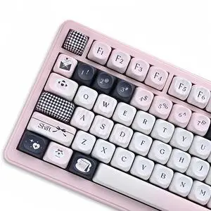 ZMX Pink and Black Keycaps,MOA Profile Cute Keycaps PBT Dye-Sub Kawaii Custom Full Size Keycap Set for Cherry MX Switch ANSI Layout 75% 60% Mechanical Gaming Keyboard DIY Creamy Key Cap (126Keys)