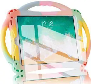 TopEsct Kids Case for iPad 6th/5th Generation, Silicon Shockproof Case for New iPad 2017/2018 9.7 inch with Tempered Glass Screen Protector and Strap, Cover for iPad Air & Air 2