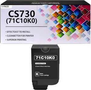 CS730 Toner Cartridge Compatible for Lexmark CS730 71C10K0 71C10C0 71C10M0 71C10Y0 Toner Cartridge for Lexmark CS730 CS735 CS737 CX730 CX735 CX737 Printers 1 Black