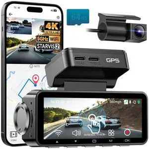 MAGELLAN DR50 3 Channel Dash Cam, 4K+2K Front Cabin Rear, Night Vision, Wide-Angle (170°), STARVIS 2 IMX678, Strong Mount, GPS, Wi-Fi App Control, 24H Parking Mode, Fatigue Alert, 64GB Card Included- Model #: ilepo467288748916QI